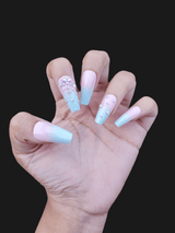 Our handcrafted accent sets feature lovely hand placed accent nails. This set features our Eutychia set with pixie dust and jeweled accents.