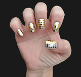 Our patent pending Nail Armor strips prevent random pop offs of press on nails. The material prevents nail oils from reaching the press on nail and weakening the glue on the nail.