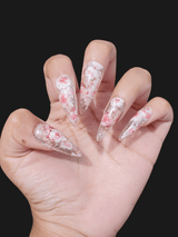 Our stunning handmade sets can be made in your desired size and shape. This set features pink florals on a crystal clear base.