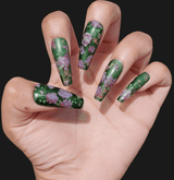 Our patent pending Nail Armor strips prevent random pop offs of press on nails. The material prevents nail oils from reaching the press on nail and weakening the glue on the nail.