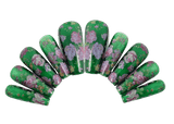 Our stunning handmade sets can be made in your desired size and shape. This set features florals on a transparent jelly green base.