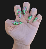 Our patent pending Nail Armor strips prevent random pop offs of press on nails. The material prevents nail oils from reaching the press on nail and weakening the glue on the nail.